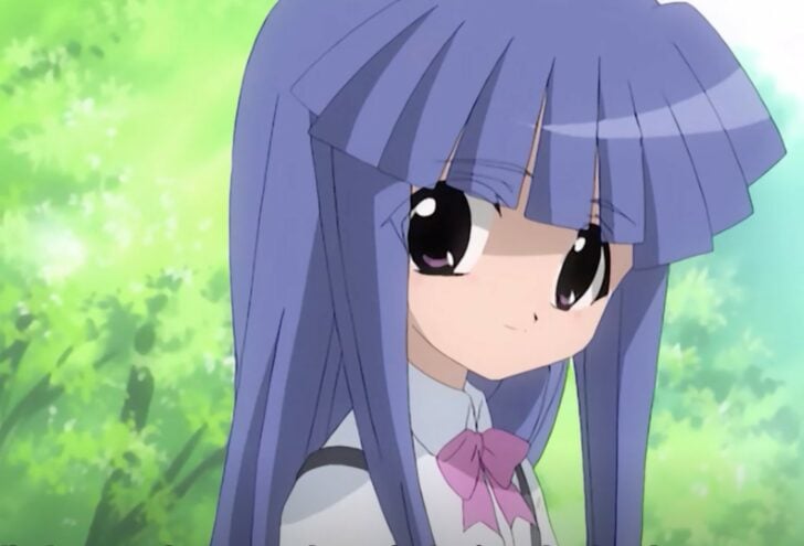 Next, let’s look into Mion Sonozaki(魅音 園崎.) Mion is the more well known and privileged sister of the Sonozaki twins. Mion is older, acts more mature, and is a tomboy. ‘Mi’(魅) means demon, ‘On’(音) means sound, ‘Sono’(園) means garden and ‘Zaki’(崎) means cape.